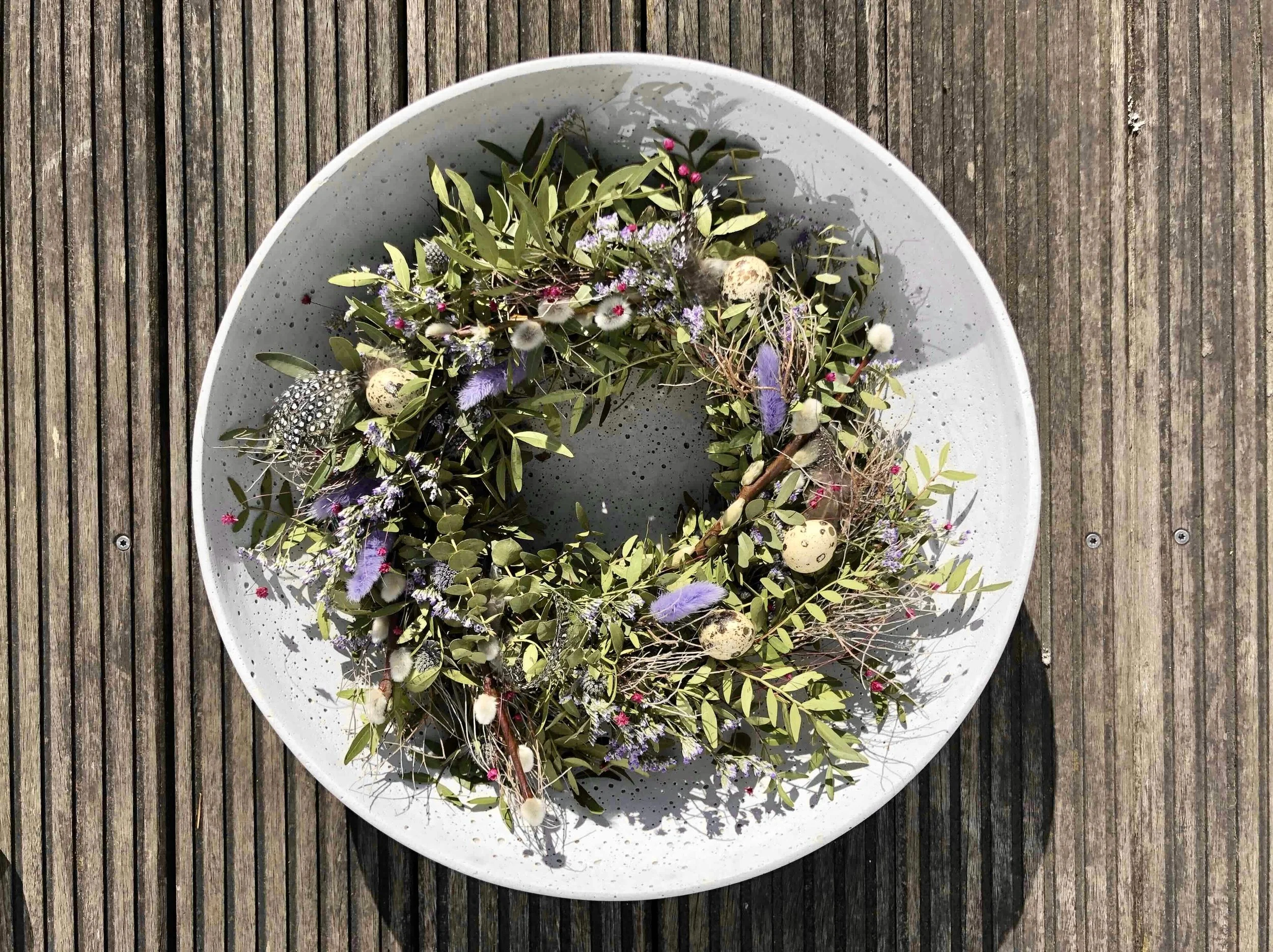 In diesem Frühlings-Workshop in Köln arbeitest du mit natürlichen Materialien, Blumen und dekorativen Elementen und gestaltest deinen ganz persönlichen Kranz.